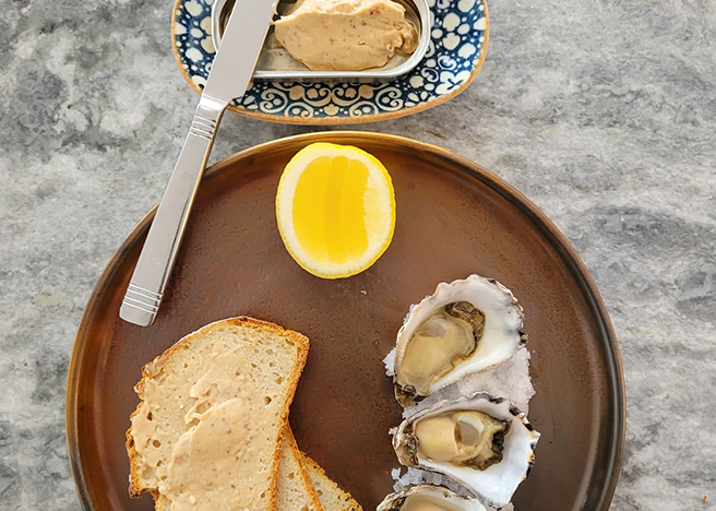 Oysters al Natural Served with Soda Bread and Anchovy Butter